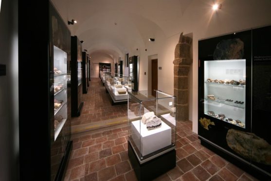 1. trasa „Svět neživé přírody“ představuje sbírku mineralogickou, petrografickou a soubor tektitů. Zvláštní prostor je věnován unikátnímu souboru moravských vltavínů.