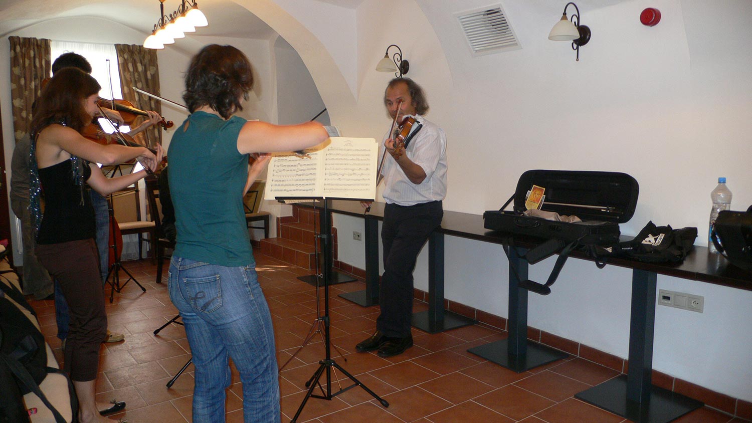 Poprvé byl u nás pan Hudeček ubytován již v říjnu 2010, kdy na koncertu, který se konal v zadní části židovské čtvrti za doprovodu špičkového komorního orchestru Musica Minore byly zahrány dvě snad nejpopulárnější díla z nepřeberné pokladnice vážné hudby – Vivaldiho Čtvero ročních období a Mozartovu Malou noční hudbu.