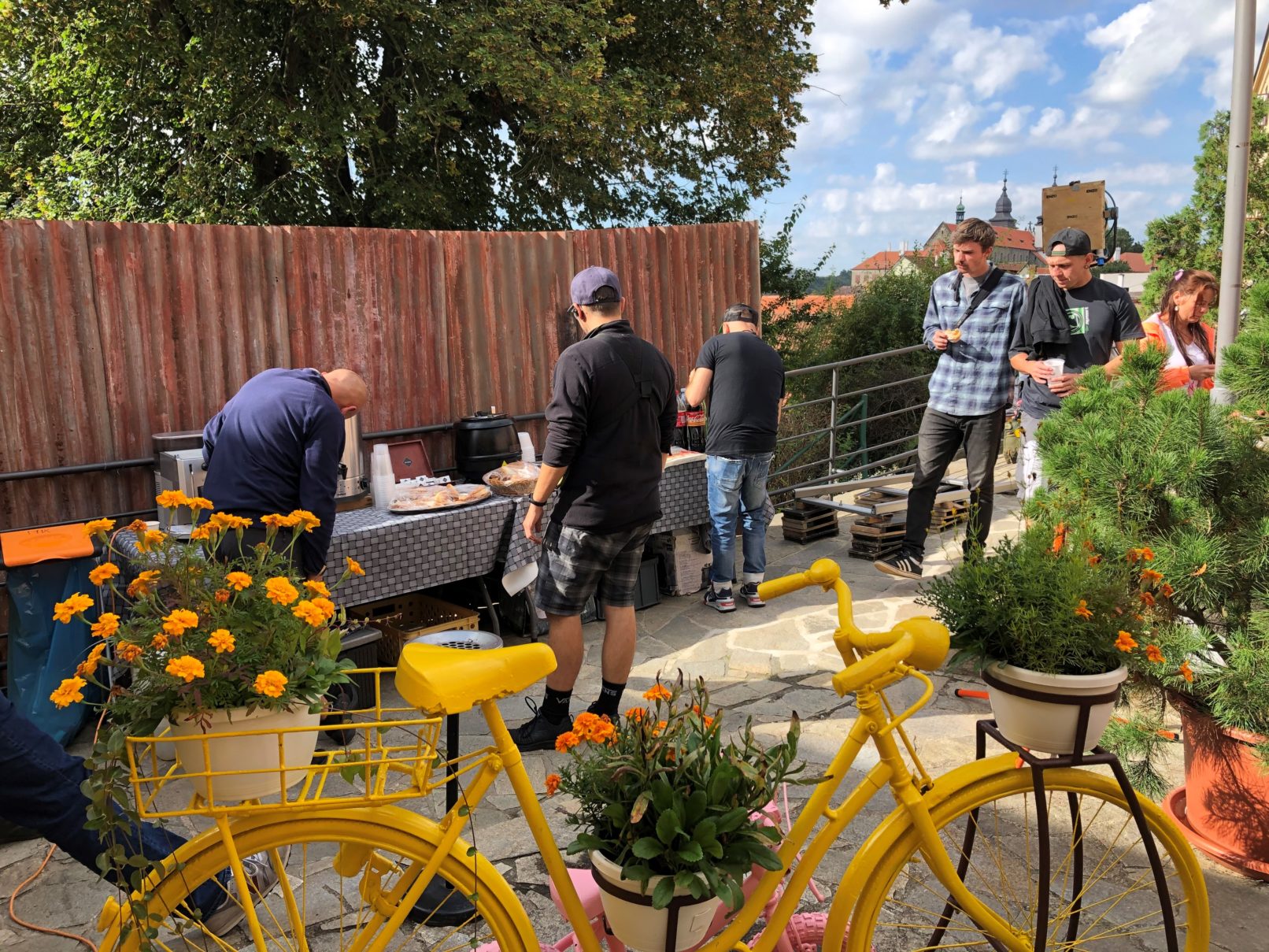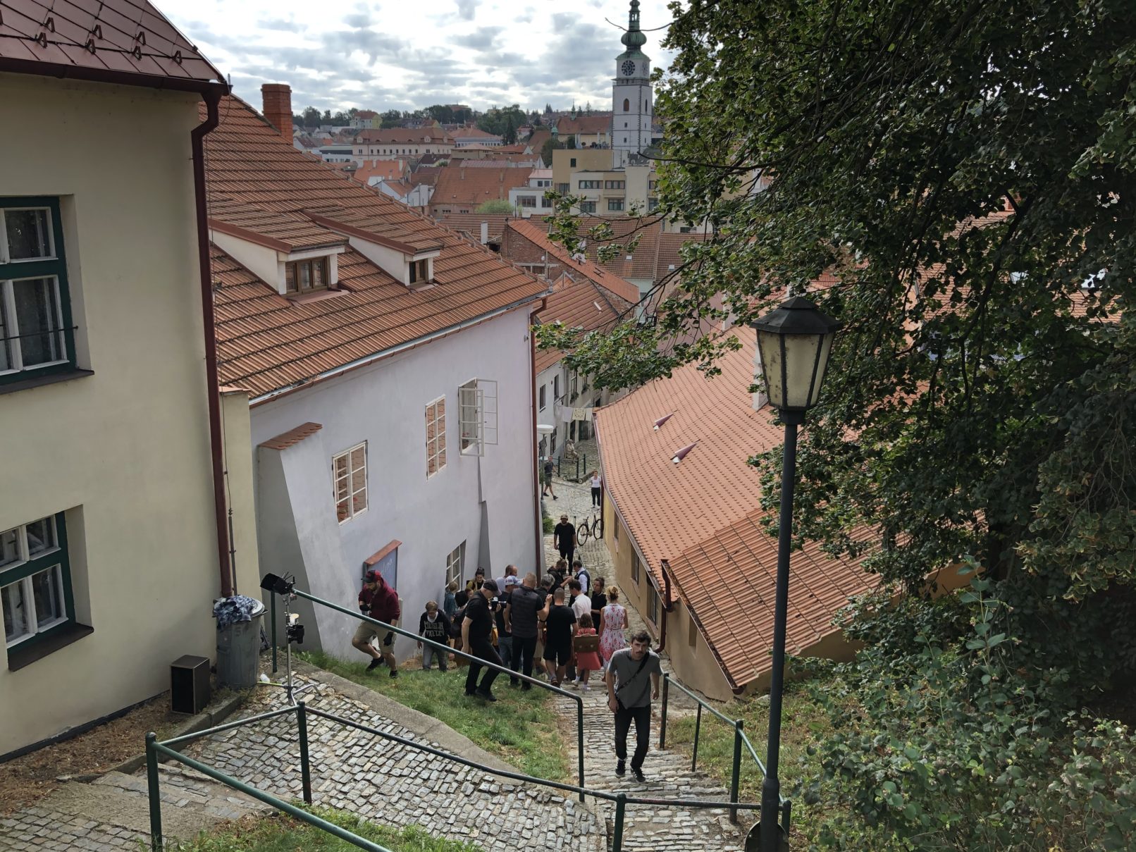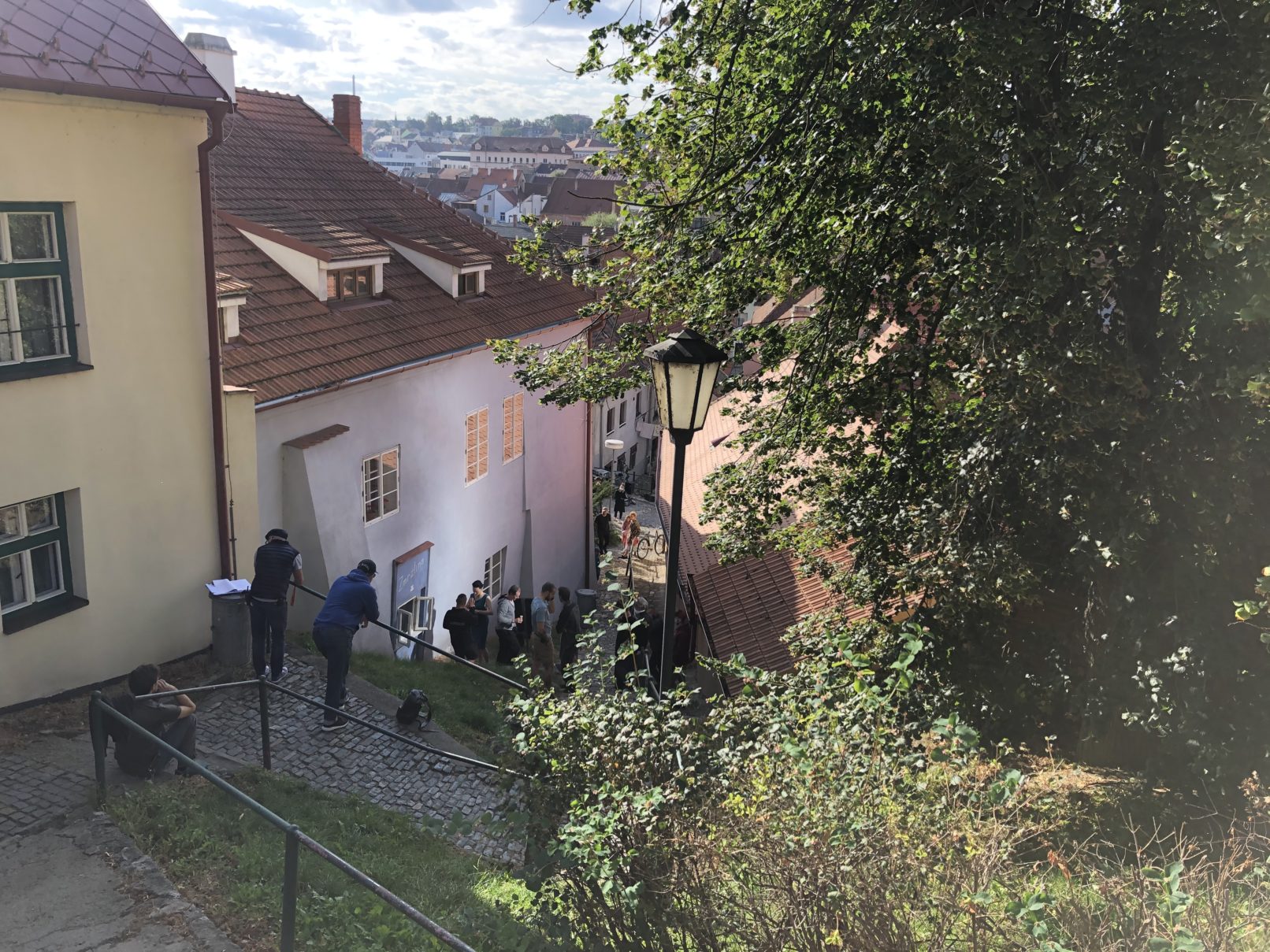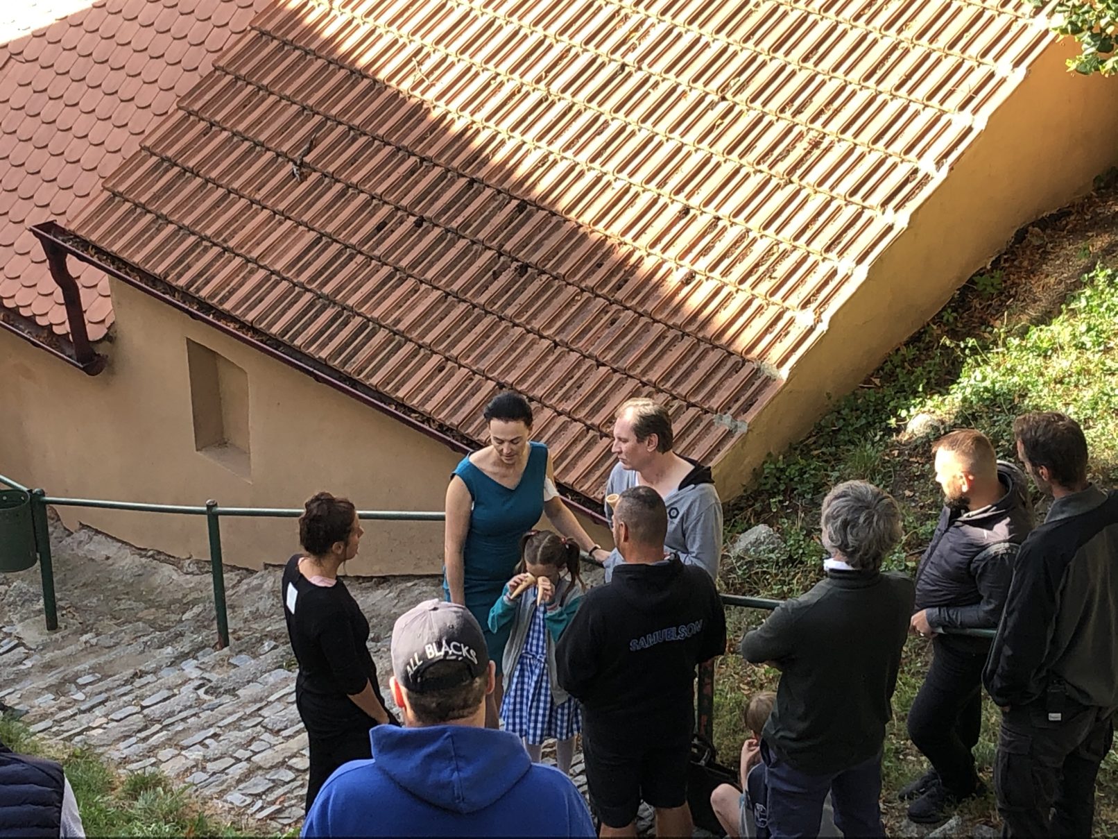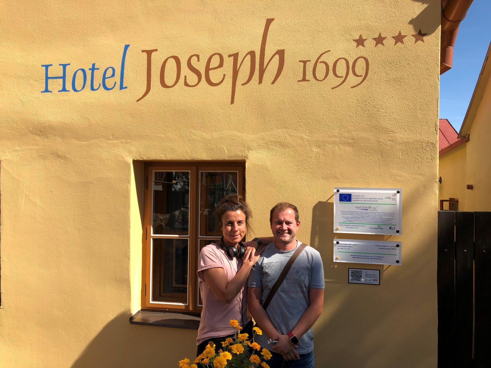 Od 10. do 12. září 2020 bylo u nás velmi živo. Beata Parkanová, která se v Třebíči narodila, natáčela u nás část svého filmu. Využila malebné uličky V Mezírce s kamennými schody a bočním vstupem do našeho hotelu a také prostor v přízemí nejstarší části našich budov z ulice Blahoslavovy. Pro natáčení muselo být provedeno několik drobných úprav exteriérů, aby nebylo vidět moderní prvky a také byl k fasádě přistavěn zmrzlinový stánek v dobové podobě – film je situován do období mezi jarem 1968 a létem 1969.