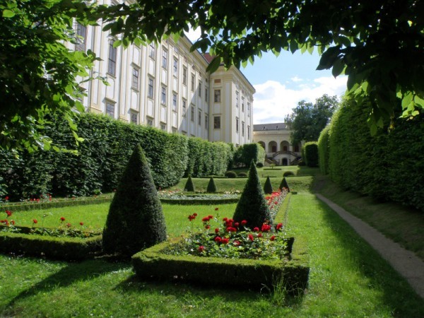 Podzámecká zahrada nacházející se hned vedle samotného zámku, jejíž původní smysl byl v tom, že fungovala jako zahrada nejen květinová, ale také zásobní zelinářská. Až v století 17.st. získala svou barokní podobu. Zahradu proměnilo v krajinářský park s živými ploty o dvě staletí dále, ve století 19. Celková rozloha 64 hektarů slouží k odvodnění řeky Moravy. Byla založena mimo městské hradby a byla postavena jak italskými tak místními mistry. Uprostřed zahrady vedou křížem krážem cestičky lemované květinovými záhony, přírodními bludišti, pěšinkami ozdobných keřů a stromů. Kolem fontán byla vztyčena osmihranná rotunda, bohatě zdobena obrazy a sochami. Jedna část zahrady je ohrazena kolonádou, lemovanou sochami. Podzámecká zahrada, která zde existovala z dob renesance, byla během staletí přestavěna v romantickém a klasicistním stylu. Poté k ní byly přidány zahradní stavby, vodní cesty a vzácné dřeviny.